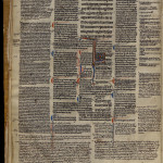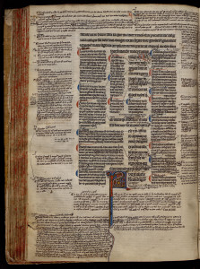 La mise en page, la décoration et le contenu varient considérablement selon les volumes. Le ms. 81 constitue la mise en page la plus aboutie. Il comporte deux niveaux de glose, la Glose ordinaire et une glose anonyme, copiée dans une écriture de petit module. S’y ajoutent des gloses complémentaires du XIIIe siècle, certainement écrites au Collège Saint-Bernard. De telles additions sont récurrentes dans les manuscrits du Collège.
